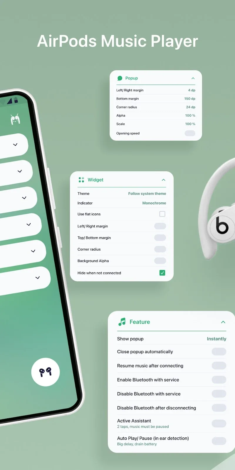 La aplicación te permite abrir ventanas flotantes en la barra de herramientas para una experiencia fluida y sencilla. Puedes configurar los ajustes de reproducción y pausa automática directamente en tu dispositivo sin pasar por pasos complicados. La aplicación también te envía actualizaciones sobre tus AirPods y te brinda información útil.