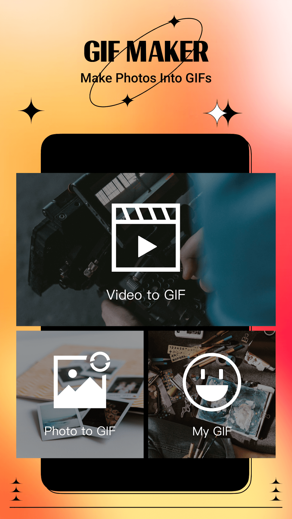 Además, la aplicación también te ofrece muchas otras funciones de edición de fotos. Los usuarios pueden cambiar sus rostros para disfrazarse de muchos personajes diferentes con sus personalidades. Los usuarios pueden cambiar la imagen mediante el toque de un botón para hacer el proceso de cambio mucho más rápido y fácil. También se te permite convertir libremente imágenes de video en imágenes GIF muy vívidas y atractivas. Gracias a los efectos, tus fotos se vuelven más llamativas y atractivas. Los usuarios disfrutan de la diversión de cambiar rostros y predecir su apariencia. Una interfaz única con muchas funciones nuevas de transformación de imágenes ha creado un espacio de edición de imágenes muy interesante para los usuarios. Fácil de usar y adecuada para todas las edades, la aplicación atrae a más y más nuevos usuarios.