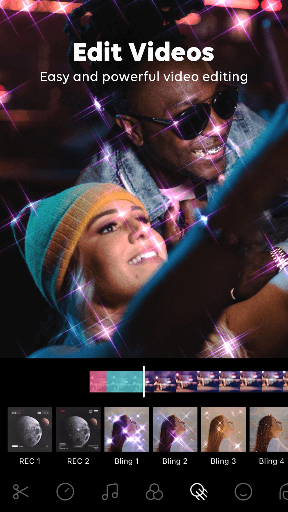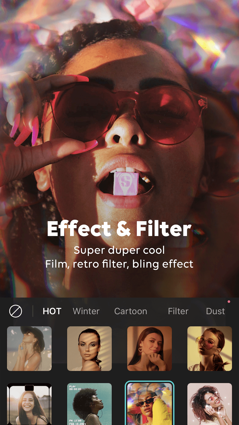 Tú estás a cargo de los cosméticos y la estética. Con la alta resolución del dispositivo y el modo nocturno, puedes tomar fotos claras de día o de noche. Para grabar una escena hilarante, usa la función Gif Bounce. ¡Haz un gif y envíalo a tus amigos para duplicar las risas! Desde la preproducción hasta el corte final, tenemos acceso a más de 500 estilos musicales diferentes. Haz un video musical de tus actividades diarias. Puedes usar una fuente de audio diferente simplemente extrayendo y reemplazando la pista de audio de tu video.