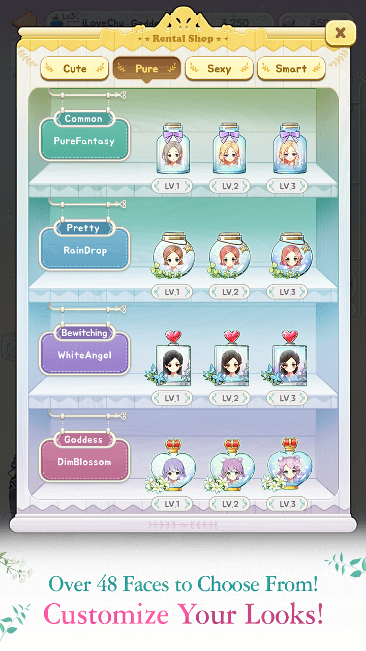 En el juego de simulación de citas, los personajes masculinos de Beauty Rental Shop son hábiles y sabios. Para ganar puntos con los chicos, cada una de tus decisiones debe ser cuidadosamente considerada, y los estrictos criterios que hemos establecido sin duda te sorprenderán. Debes cumplir los cuatro criterios: linda, sexy, inteligente y pura. Necesitarás hacer compras específicas en la tienda para adaptarte a la estética preferida de cada nuevo tema que hemos creado. Dado que tu color de cabello y expresión facial son tan importantes, debes hacer todo lo posible para invertir en un look que garantice una cita exitosa.