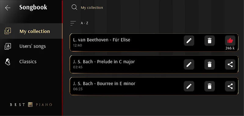 | Nombre de la app | Best Piano |