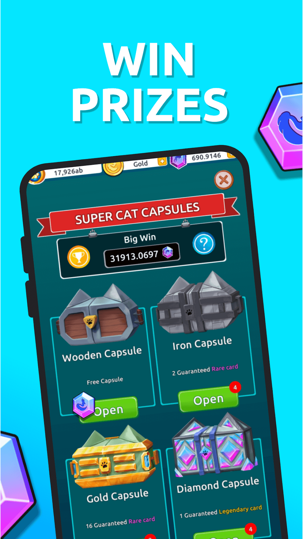 Recibirás cápsulas gratuitas con tu pedido a intervalos regulares de 4 horas, y su contenido es fascinante y abundante para que ganes más objetos y NFT legendarios. Jugar a juegos dentro de la cápsula NFT es una forma de ganar criptomoneda y tarjetas NFT, que pueden destinarse a comprar gatitos adorables más adelante. También puedes intercambiar por más cápsulas, que se clasifican en numerosos rangos y rasgos para mantener el progreso e incluso aumentar el valor de tu NFT a través de varios usos.