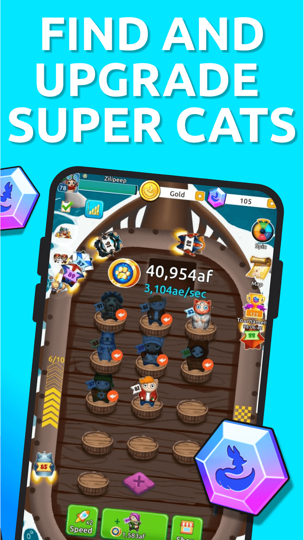 Los gatos en pantalla tienen un efecto distinto y te darán un progreso más excelente con las criptomonedas a medida que completas numerosos desafíos. Además, puedes fusionar los gatos y crear un gato de mayor rango con mejor efectividad. Al repetir el proceso, puedes ganar más gatos con mejores rangos y luego tener un gran impulso en los generadores de moneda para ayudarte a ganar más cosas pasivamente.