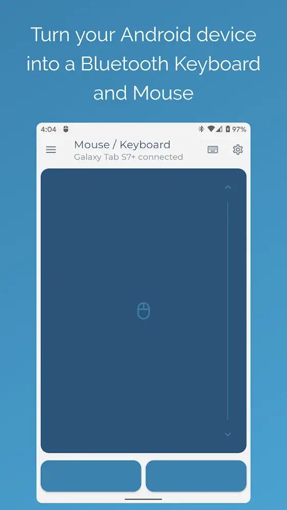 Teclado y Ratón Bluetooth sin Servidor para PC/Teléfono es conocido como una aplicación que puede ayudarte a convertir tu dispositivo móvil en una herramienta de control remoto. Específicamente, la característica que esta aplicación puede ofrecer es la función de un teclado y un ratón. No importa lo lejos que estés de tu tableta o computadora de escritorio, puedes usar y activar esta aplicación con éxito. Solo dos dispositivos pueden conectarse vía Bluetooth.