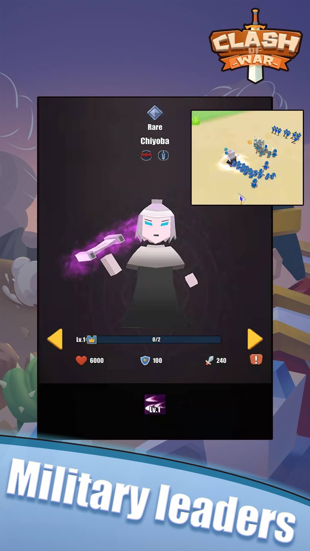 El mundo que gobierna el Káiser es próspero, pero su población se tambalea por años de duro trabajo y convulsiones políticas en el interior y en el extranjero. El mundo está en caos, y la pregunta ahora se dirige a quién puede resolver esto. ¡Tú eres la respuesta que el juego busca! Si te unes a Clash of War – Exciting Battle, te convertirás en el líder más poderoso de la galaxia. También podrás liderar tu ejército y completar cualquier misión. Un día, la luz conquistará la oscuridad y será gloriosa.