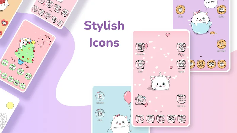 - Variedad de Gatos Lindos: La aplicación te proporciona muchos fondos de pantalla únicos para que elijas y también incluye iconos de gatos adorables para crear una impresión positiva.