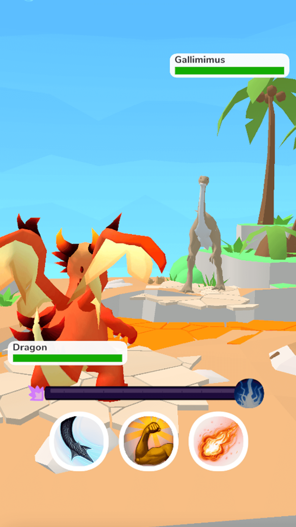 Después de completar la combinación, DNADino tomará unos segundos para crear el dinosaurio que solicitaste. Luchará contra cualquier dinosaurio especificado por el sistema. La batalla tendrá lugar bajo tu control. Los movimientos de ataque básicos se mostrarán en la pantalla para los jugadores, y también se utiliza un medidor de poder específico para estos movimientos. Ambos guerreros se actualizan con salud en vivo para que los jugadores puedan observar fácilmente. Al usar el derecho de reponer salud, tienes un turno extra de reaparición para continuar el combate. Los ganadores serán recompensados con monedas para desarrollar aún más el trabajo de investigación. Poseerás una enorme colección de dinosaurios después de participar en esta misión.