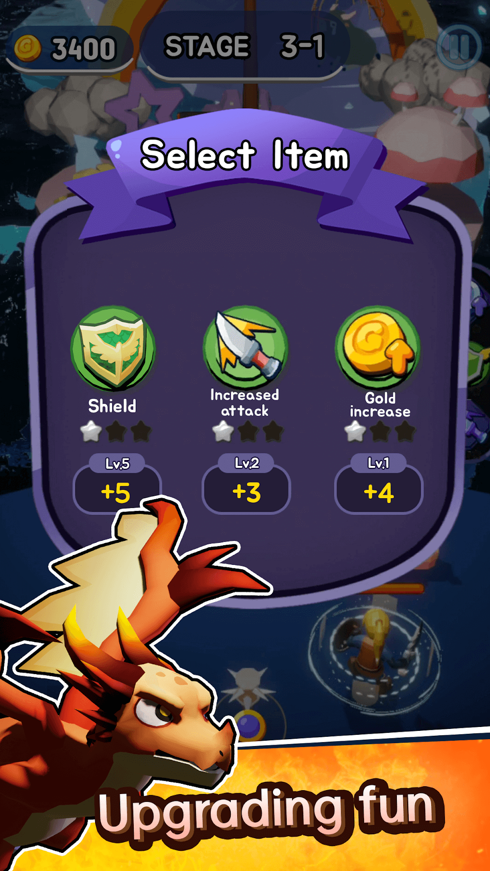 Un menú de fortalecimiento está bloqueado al inicio del juego, así que completa el escenario para desbloquearlo. Además, si completas la OLA en el escenario, puedes fortalecer temporalmente ya sea el poder de ataque, la defensa o los fondos adquiridos del personaje. Mientras el menú de mejora no esté abierto, es una buena idea mejorar ya sea el ataque o la defensa.