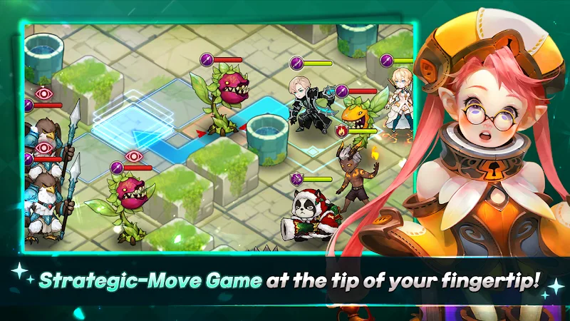 La mecánica central es trazar una ruta de movimiento para atacar a todos los enemigos a lo largo de esa ruta. Debes idear estrategias para encontrar el camino más óptimo que te permita dañar a la mayor cantidad de enemigos. Las habilidades de combate también se usan con toques de botón, pero tienen períodos de enfriamiento que limitan su uso repetido por turno. Tanto las unidades del jugador como las enemigas solo pueden moverse y atacar una vez por turno. Trazas una ruta y luego puedes atacar a cualquier número de enemigos en ese camino siempre que tengas suficiente movimiento. Sin embargo, el final de la ruta debe ser un espacio vacío. Las habilidades se dirigen a un solo enemigo y se usan antes o después de moverse cada turno. Este sistema crea una jugabilidad táctico-puzle atractiva. Debes analizar el mapa y planificar rutas eficientes para tus unidades. Es una novedosa desviación del simple movimiento y ataque a enemigos adyacentes como en muchos RPGs de estrategia.