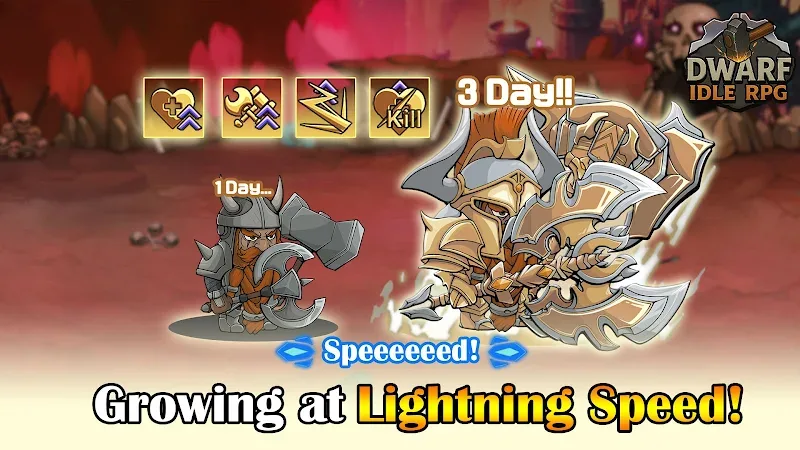 El viaje de un guerrero para conquistar la arena pasará por muchas etapas. Los jugadores pueden acompañar a sus guerreros favoritos en su travesía para conquistar Dwarf Idle RPG. Cada combate es un momento para practicar y aprender las habilidades de los jugadores. Pueden forjar armas libremente y crear sus estrategias de combate únicas.