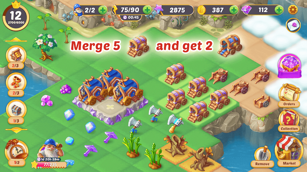 ¿Alguna vez has sentido la punzada de quedarte sin recursos en un juego? EverMerge siente tu dolor. Por eso, ofrece minas donde los jugadores pueden recolectar materiales esenciales como piedra, madera y más. Es como darles a los jugadores un minijuego dentro del juego. Bastante ingenioso, ¿eh?