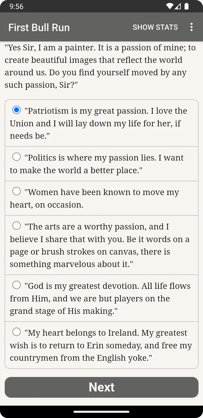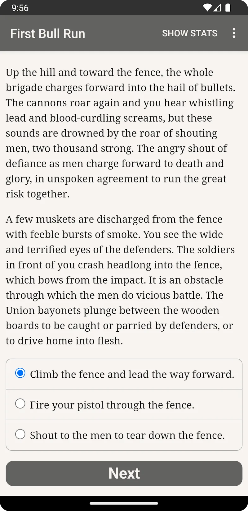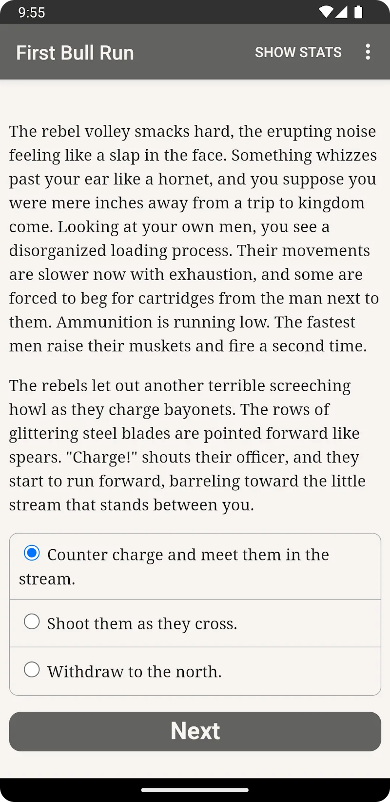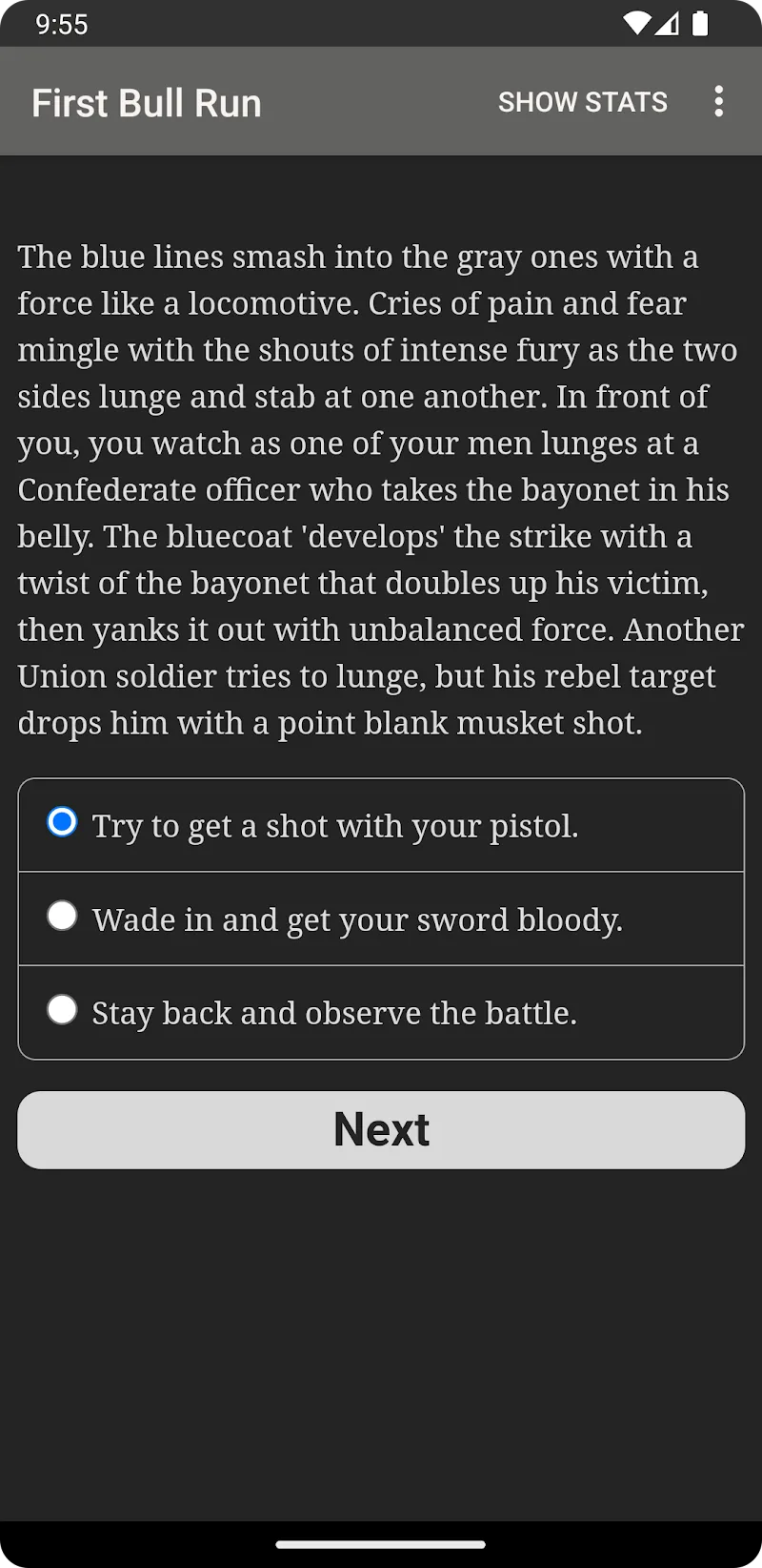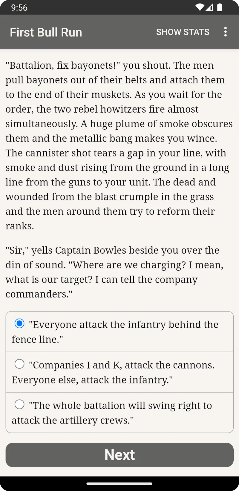 Si eres un aficionado a la historia, First Bull Run será una de esas novelas que te cautivará. En realidad es un juego, pero no tiene imágenes ni sonidos. Simplemente contiene una gran cantidad de texto, hasta 90 mil palabras. Los jugadores leerán una novela y, en puntos importantes, tomarán decisiones. Esta es la batalla más grande en la historia de Estados Unidos, la guerra fría. El Norte y el Sur están en guerra, y el jugador será el comandante del ejército del Sur. Que la guerra llegue a un final feliz o no depende de ti. ¿Serás un héroe o un villano?