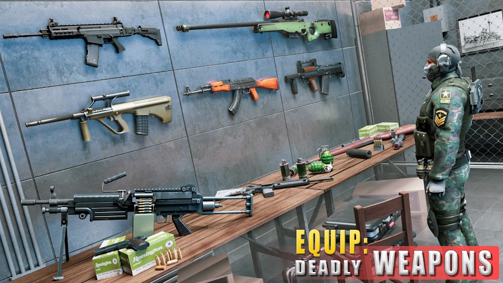 Cuando juegues a Gun Shooting Games Offline FPS, el juego te proporcionará cientos de armas únicas y actualizadas diseñadas para facilitar la eliminación de tus enemigos. Pueden demostrar sus habilidades de puntería únicas con cada arma a sus compañeros. Puedes usar el arma para atacar y derrotar a tu oponente de la manera más segura posible; sin embargo, asegurar tu lugar en el trono es completamente tu responsabilidad. Cada jugador debe participar en combate de la manera más sencilla y sin exigencias posible. Además, tendrás mucha libertad para determinar cómo mantienes tu fuerza y vitalidad.