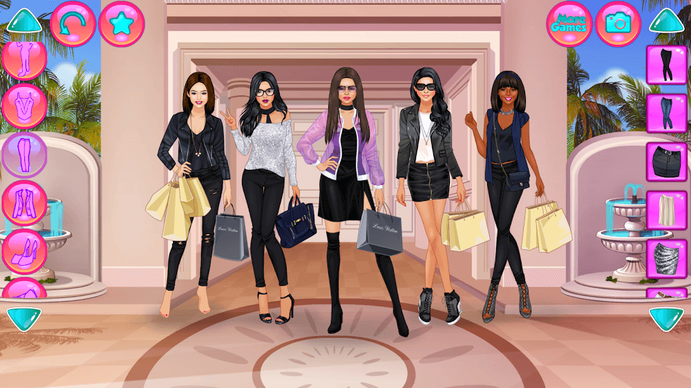 Cada personaje jugable puede parecer una actriz, una estrella de cine, una superestrella de un desfile de moda, una modelo famosa en la pasarela, o simplemente una encantadora chica compradora con un padre multimillonario, gracias a la increíble variedad de ropa del juego. Las dos cosas que más les gustan a nuestras universitarias son socializar y comprar. Asumirás el papel de diseñador de moda en estos juegos descargables.