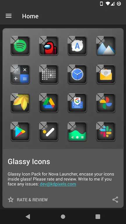 | Enlace a Google Play | https://play.google.com/store/apps/details?id=com.kdpixels.iconpacks.glassy |