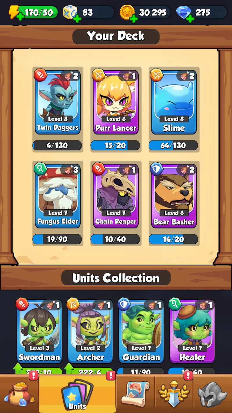- Posibilidades estratégicas infinitas: El sistema te permite experimentar con combinaciones de equipo infinitas. Los jugadores fusionan tres duendes o monstruos idénticos para desbloquear una unidad más poderosa con mejores estadísticas y habilidades asombrosas, garantizando que cada batalla sea fresca y emocionante.