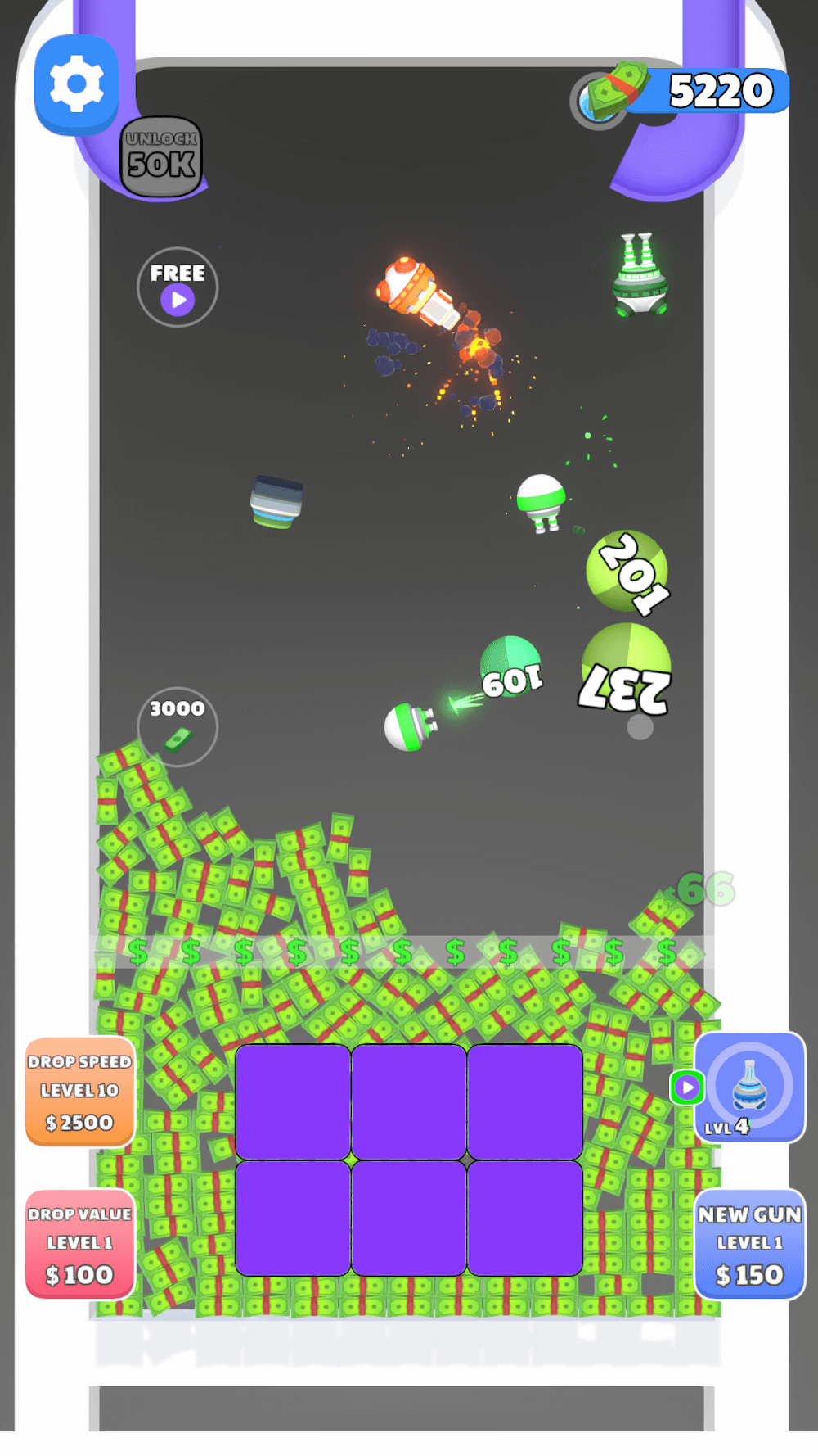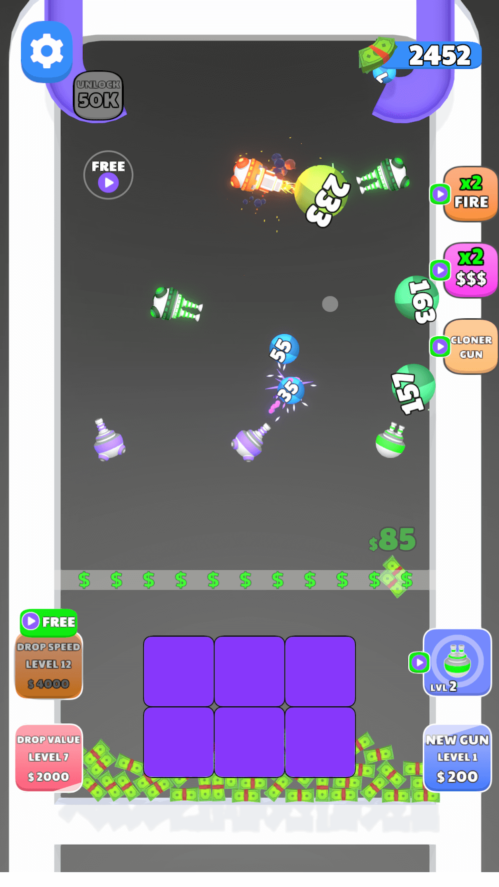 Puedes elevar la calidad de tus armas combinándolas y aumentar el valor de tus bolas haciendo lo mismo. Ambas mejoras son posibles con la misma acción. La fusión dará lugar a varios elementos fascinantes, y puedes mejorar los poderes de las torretas o la calidad de las bolas para que duren más y te generen más dinero con solo ver cómo se fusionan ampliamente.