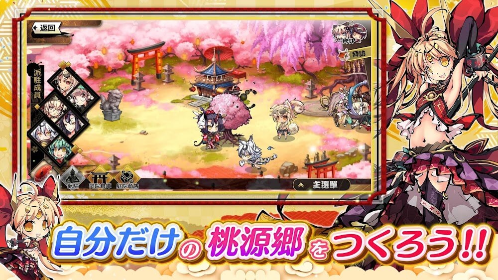 Después de la batalla, los jugadores pueden relajarse en el Municipio de Taoyuan, que presenta adorables personajes chibi. Los jugadores pueden hacer de Togenkyo su propio lugar reorganizando los adorables muebles, árboles, edificios, etc. del pueblo, e invitando a sus hermosas princesas favoritas a vivir allí. Los jugadores también pueden dar regalos a los personajes chibi para ganarse su favor.