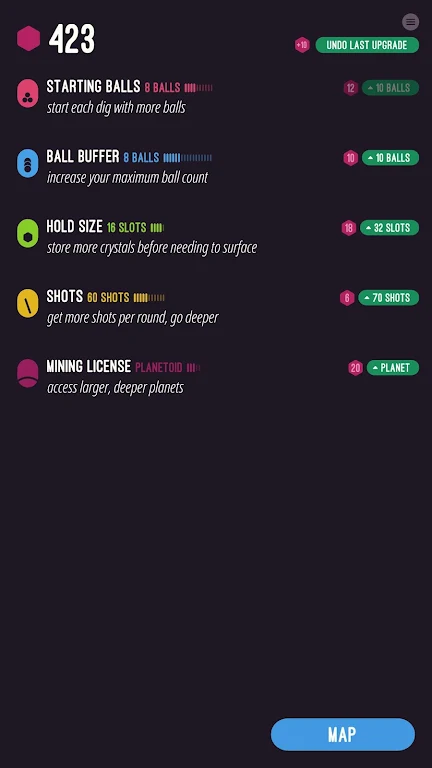 La característica utilizada a menudo en Holedown es el rebote de las balas en las capas de tierra. Intentarás disparar en la posición correcta y asegurarte de que puedan causar el mayor daño. A partir de ahí, ahorrarás mucho tiempo antes de pasar a las siguientes capas de desafíos. El nivel de grosor aumentará, y no deberías desperdiciar recursos con los elementos simples de arriba. Otro punto de desafío requiere que recolectes una cierta cantidad de cristales, que se consideran recursos raros en el juego. Por lo tanto, a veces dudarás en recolectar todos los materiales o completar la jugabilidad.