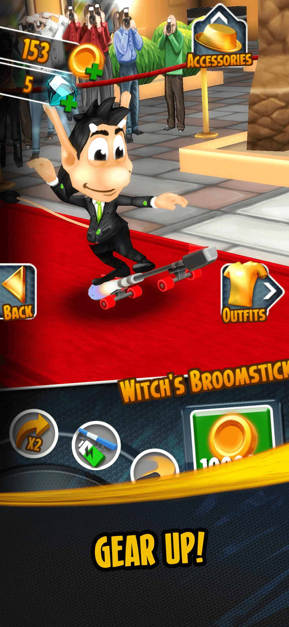 Durante tu escape de los paparazzi, puedes comprar atuendos completamente nuevos, equipos únicos y monopatines para ayudar en tu viaje más adelante. Elige el monopatín, la ropa y las mejoras que quieras usar, ya que todo tiene un diseño, color y más distintivos para hacer el viaje más vibrante. Los jugadores pueden personalizar los atuendos y otras cosas relacionadas a su favor y divertirse con Hugo.