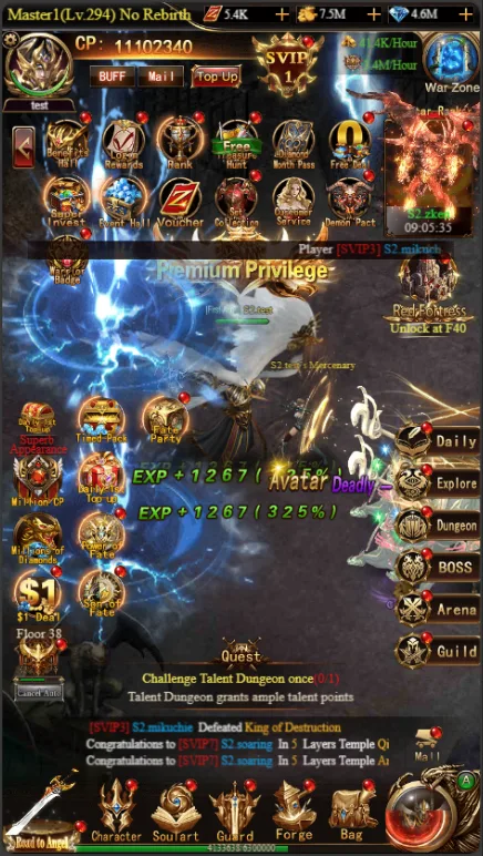Además, adorna a tu héroe con alas coleccionables, disfraces y equipo obtenidos de actividades para lucir tu estilo personalizado. Recompensas diarias raras por iniciar sesión, eventos de tiempo limitado e hitos de nivel ofrecen oportunidades para conseguir nuevas cosméticas llamativas. Destaca entre la multitud.