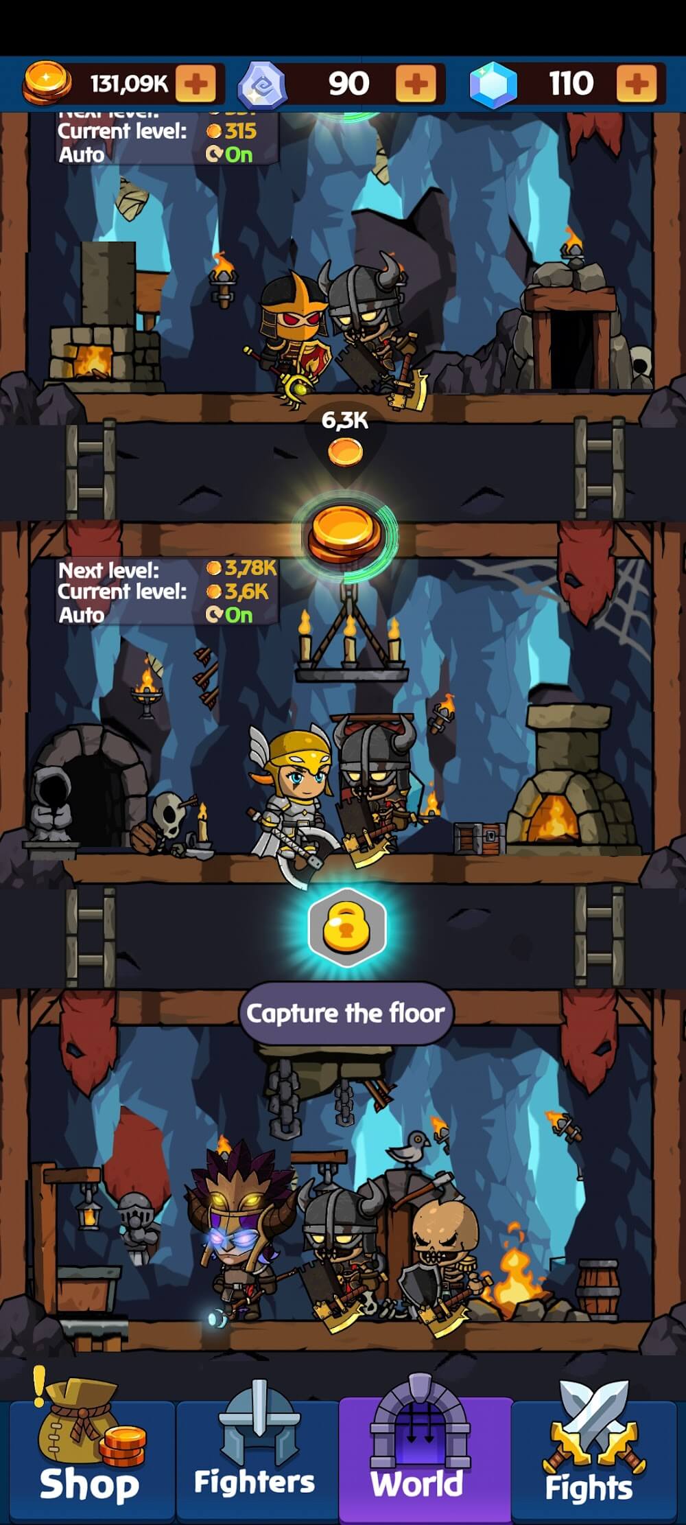 Y además, con la ayuda del dinero recolectado, puedes conseguir más héroes en este Idle Underworld, mejorar todos los territorios enemigos y recolectar las recompensas.