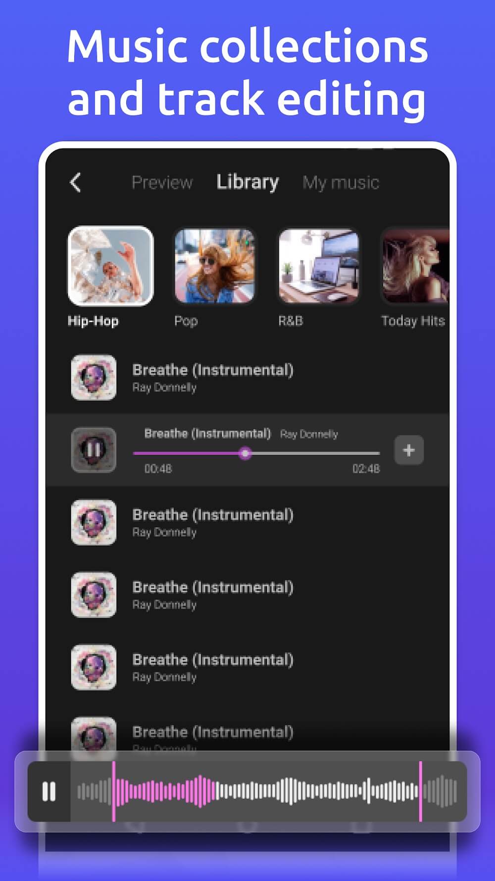 La aplicación proporciona muchas herramientas para ayudar a los usuarios a completar la edición que desean. Las historias de Instagram se crean rápidamente cuando los usuarios ya tienen una idea. Pueden aplicar herramientas adicionales de IA que son extremadamente convenientes. El sistema permite a los usuarios agregar audio a sus historias antes de publicarlas.