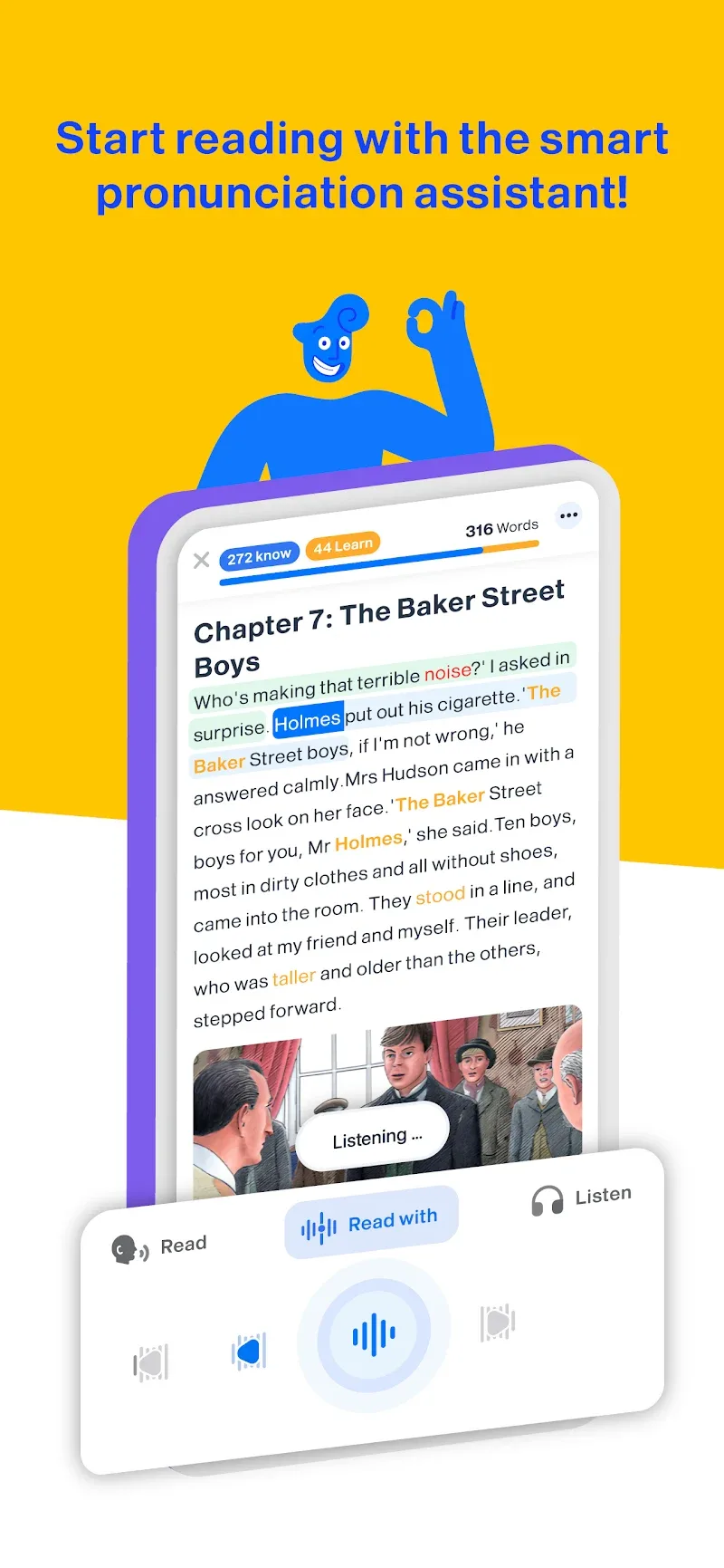 - Impulso de Aprendizaje Divertido: El proceso de aprendizaje basado en texto con narración de historias ayuda a los usuarios a mejorar sus habilidades perceptivas. Leer muchos libros de texto directamente hace que el aprendizaje sea aún más agradable. Este nuevo tipo de aprendizaje ayudará a los usuarios a aprender y usar el nuevo idioma sin ningún problema.