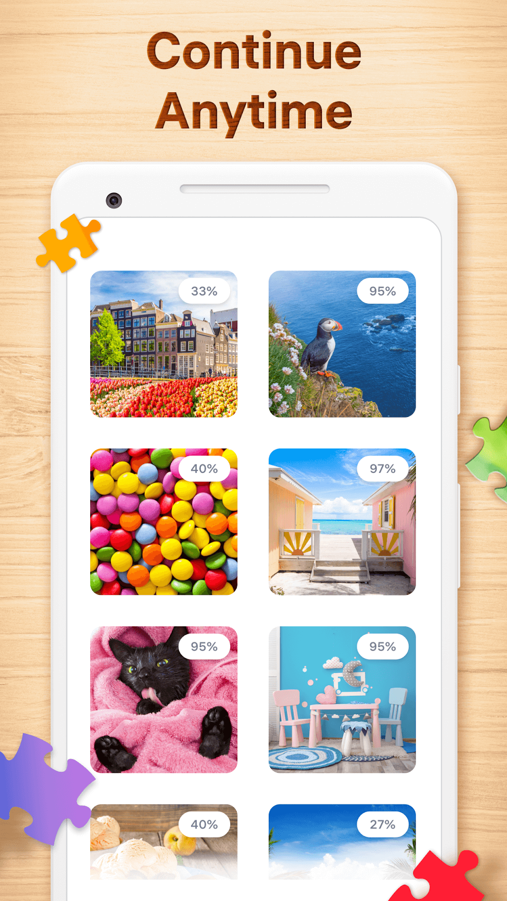 El propósito de Jigsaw Puzzles es ensamblar una colección de rompecabezas de dificultad creciente. Hay muchos juegos en este género, pero la estética atractiva de este juego lo hace destacar. Después de un largo día de trabajo o escuela, puedes relajarte en el entorno del juego. Todos tomarán turnos haciendo preguntas e intentando resolver problemas desconocidos. Excelente y atractivo, pero tan difícil como las otras opciones. Los rompecabezas del juego desafiarán tu mente, pero serás bien recompensado si tienes éxito.