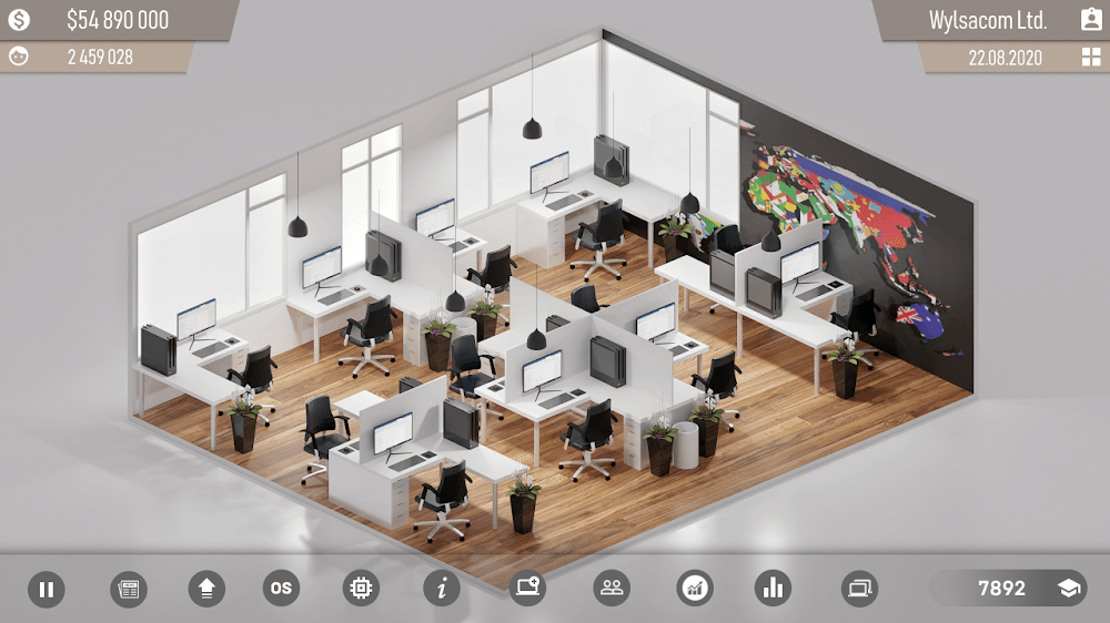 El juego te da acceso a una variedad de posibilidades adicionales entre las que elegir. Puedes estudiar la posición de las organizaciones competidoras, leer las noticias, utilizar las nuevas funciones de investigación, adquirir nuevos lugares de trabajo, desarrollar tus propios procesadores y sistemas operativos, reclutar nuevas personas, gestionar el marketing de tu marca y hacer mucho más. Mediante acciones sencillas, puedes agruparlas y convertirlas en algo mayor, y lograr lo que desees con tus metas y visiones.