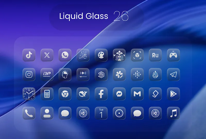 - Estética Elegante de Cristal: El paquete de iconos es elegante y simple, al estilo de iOS 26. La belleza del paquete de iconos se expresa a través del estilo de diseño y cada pequeño detalle. Los usuarios se sentirán satisfechos al usar un paquete de iconos especial en términos de estilo y diseño.