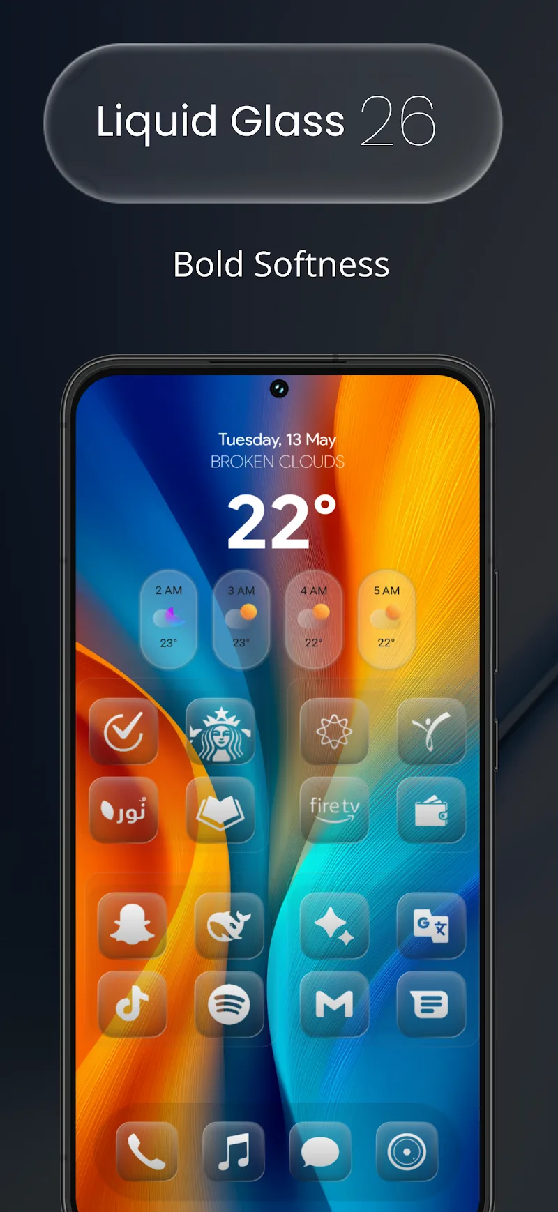 La aplicación trae opciones innovadoras a los usuarios. Pueden buscar en este paquete de iconos nuevas y únicas plantillas de iconos con el estilo iOS 26. El efecto transparente aporta la belleza del minimalismo al paquete de iconos. Los usuarios pueden configurar fácilmente el paquete y utilizar los servicios de la aplicación al instalar un lanzador adicional.