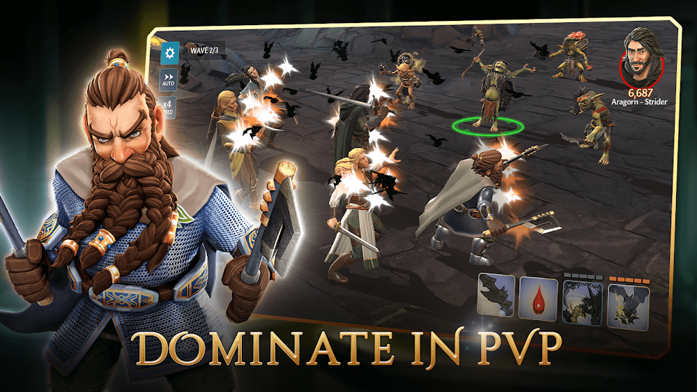 - Personajes Icónicos: Cada persona puede acompañar a héroes legendarios como Gandalf, Frodo y Legolas. A partir de ahí, puedes transformarte en personajes del universo correspondiente para destruir rápidamente al enemigo.