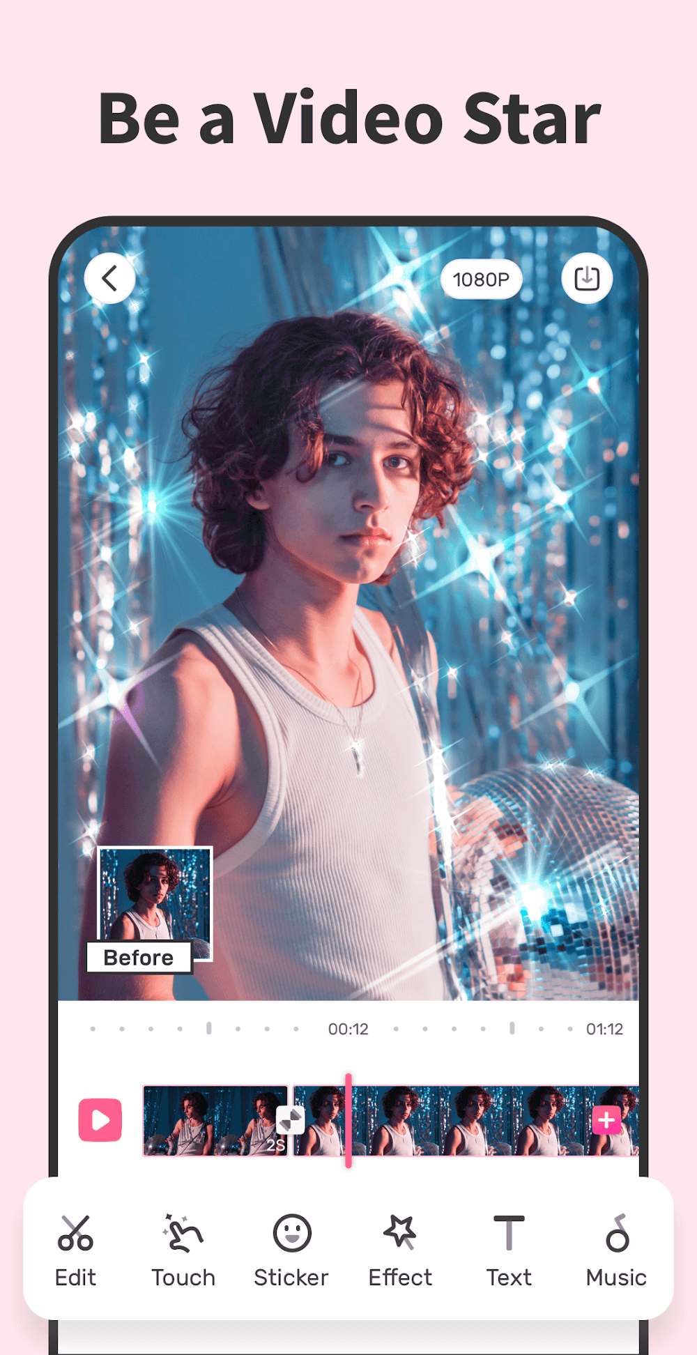 Este programa no es simplemente un editor de video; también incluye una cámara que el usuario puede usar. Los usuarios pueden grabar videos fácilmente con la cámara de la aplicación y editarlos directamente sin tomar demasiado tiempo. Durante la grabación, los usuarios pueden aplicar efectos y filtros al instante, dándoles más control sobre el producto final. Otro método para crear un video es usar la colección de fotos existente del usuario como base para el proyecto. Los usuarios pueden aplicar una variedad de efectos de transición al video, aumentando el atractivo general del video.