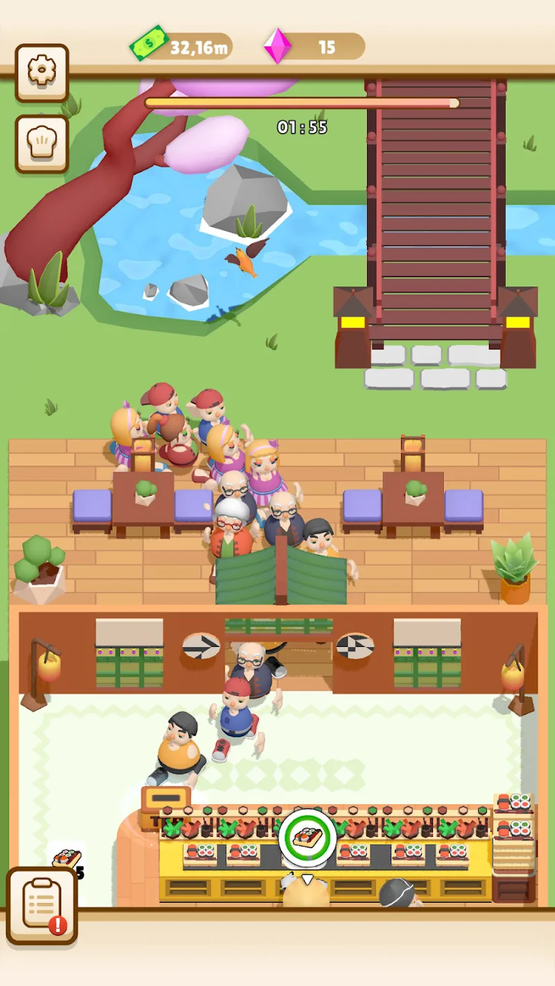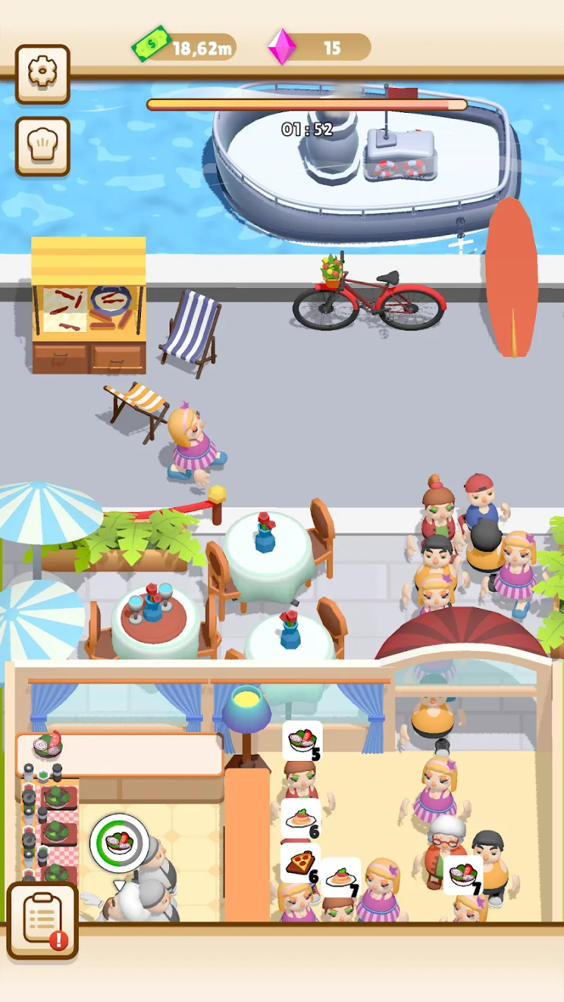 - Característica de Combinación de Estación de Trabajo: Los jugadores equiparán sus cocinas con máquinas más capaces. La producción de hamburguesas estará sobrecargada en ocasiones. Una gran cantidad de clientes que lleguen al mismo tiempo puede causar enormes problemas a los jugadores. Los jugadores ampliarán el espacio para adaptarse a otros servicios.