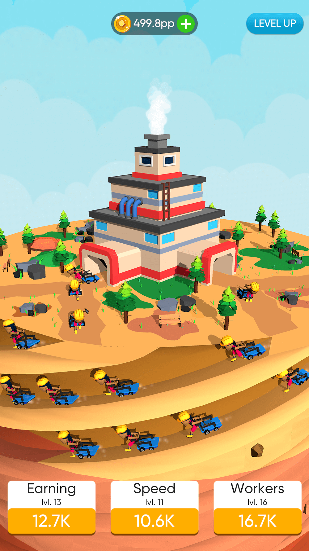 La tripulación minera requiere muchas mejoras si quieres aumentar la producción o los ingresos. El juego tiene diferentes opciones para ti, que varían en ganancias, velocidad y trabajadores, para que puedas decidir tus próximos cursos de acción. Están vinculadas entre sí para mejorar los ingresos de la operación, y puedes elegir cualquiera y elevarlas a nuevos niveles para presenciar una bulliciosa operación minera. Eso te ayudará a cavar más profundo o abrir nuevos túneles mineros en espiral. La mejora puede ser interminable hasta que termines la ubicación y agotes todos los recursos que puedas obtener.
