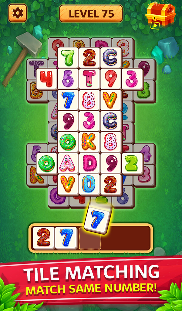 El juego de rompecabezas Tile Match presenta más de 1900 niveles únicos de fichas coincidentes. No es difícil aprender y jugar, pero hay muchos momentos difíciles. Cuando eliminas cada bloque, el nivel se reinicia. Varios símbolos, incluyendo letras, números y más, están representados en las fichas que deben coincidir. Jugar repetidamente inevitablemente conducirá a etapas más desafiantes. Si te quedas atascado, puedes utilizar pistas para encontrar fichas que vayan juntas, o puedes deshacer la ficha del panel y volver al tablero.