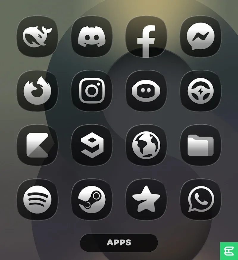 OneGlass (Dark) – Icon Pack te ofrece una serie de plantillas de iconos nuevas, únicas y modernas para que elijas libremente para tu dispositivo. Al mismo tiempo, también puedes acceder a más álbumes de fondos de pantalla destacados para sincronizar el dispositivo y volverlo más moderno. Los usuarios pueden diseñar libremente nuevas plantillas de iconos y subir imágenes destacadas desde el dispositivo para crear su propio fondo de pantalla personal.