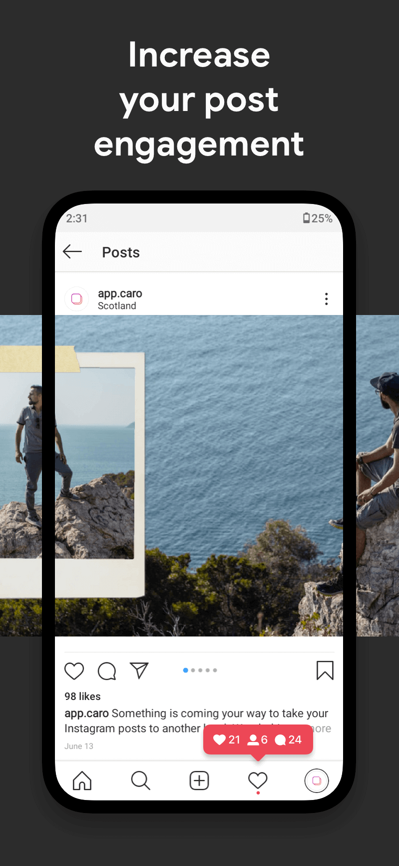 - Permite de manera fácil: Para publicaciones, la aplicación tiene la función de crear impresionantes publicaciones en carrusel a partir de fotos o incluso de una sola foto.