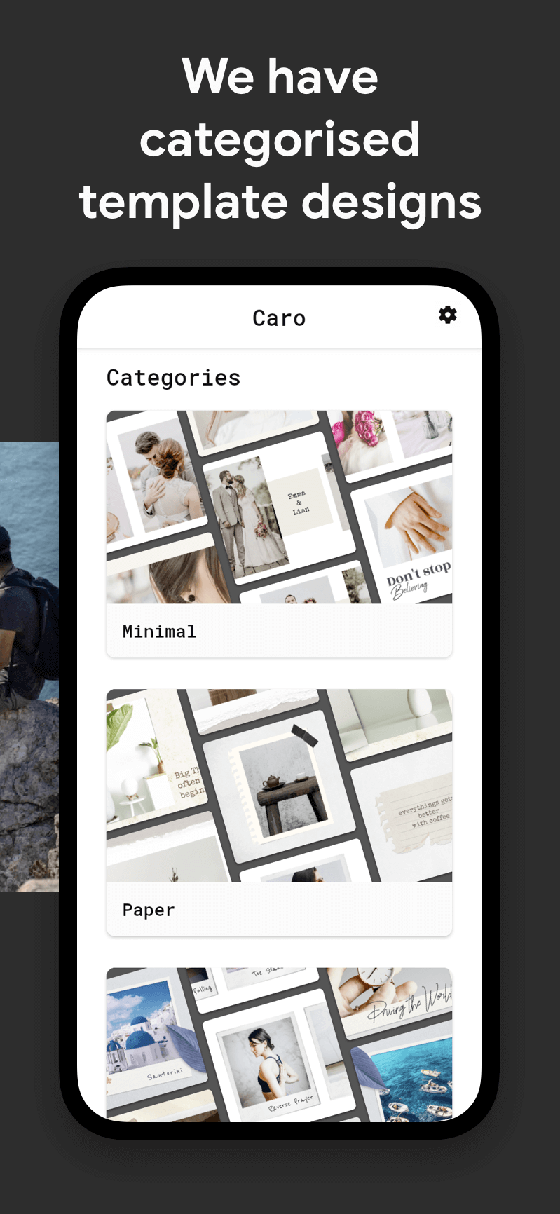 - Ofrece una variedad: Una interesante nueva característica que tiene la aplicación es que te proporciona muchos temas diferentes como cine, Polaroid, Papel y Minimalista.