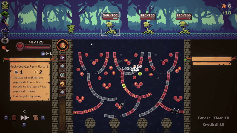 Peglin – Un Pachinko Roguelike se centra en combates impresionantes contra diversos enemigos. Los monstruos se clasifican según su fuerza además de sus mecanismos de ataque sorpresa. Por lo tanto, te ves obligado a recolectar los objetos necesarios para progresar rápidamente.