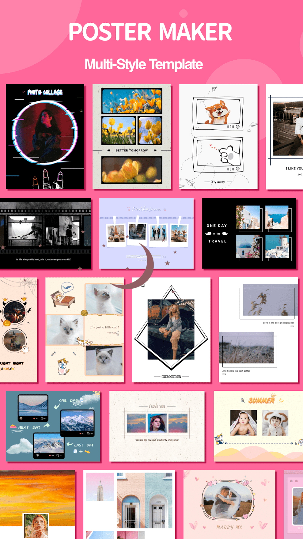 - Amplia Gama de Diseños: Lo que más me impresiona de Collage Maker es su tesoro de diseños extremadamente rico, con más de 500 diseños diversos, adecuados para cada ocasión y estilo.