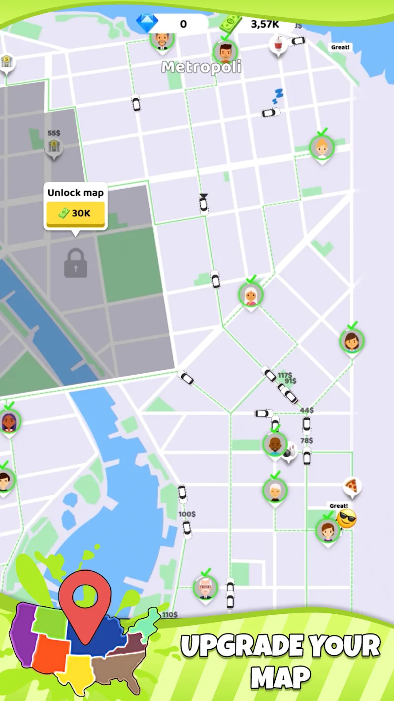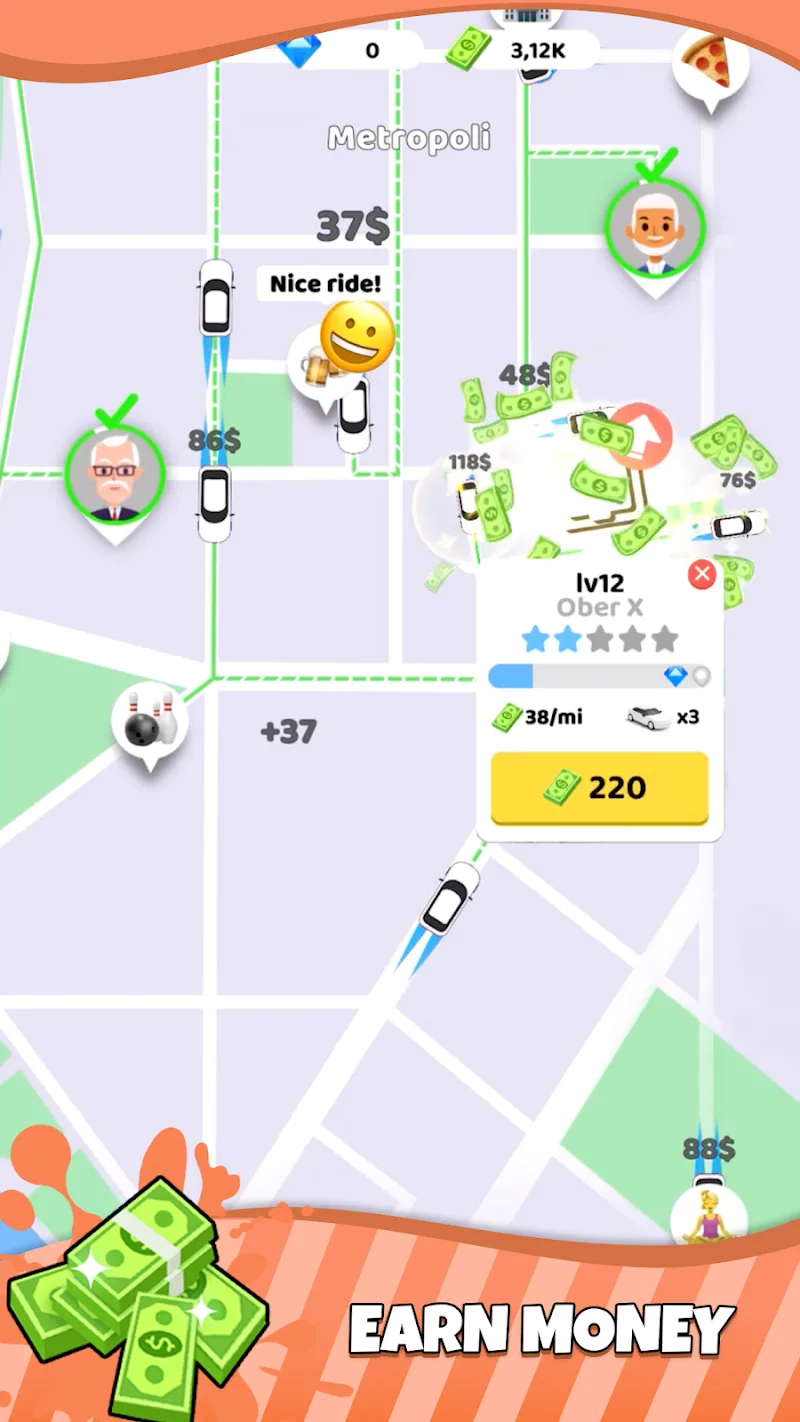 - Comienza Con Toques: Puedes comenzar tus juegos con toques. Solo necesitas tocar y tocar para controlar rápidamente tus coches y recoger y dejar pasajeros de manera rápida y más efectiva.