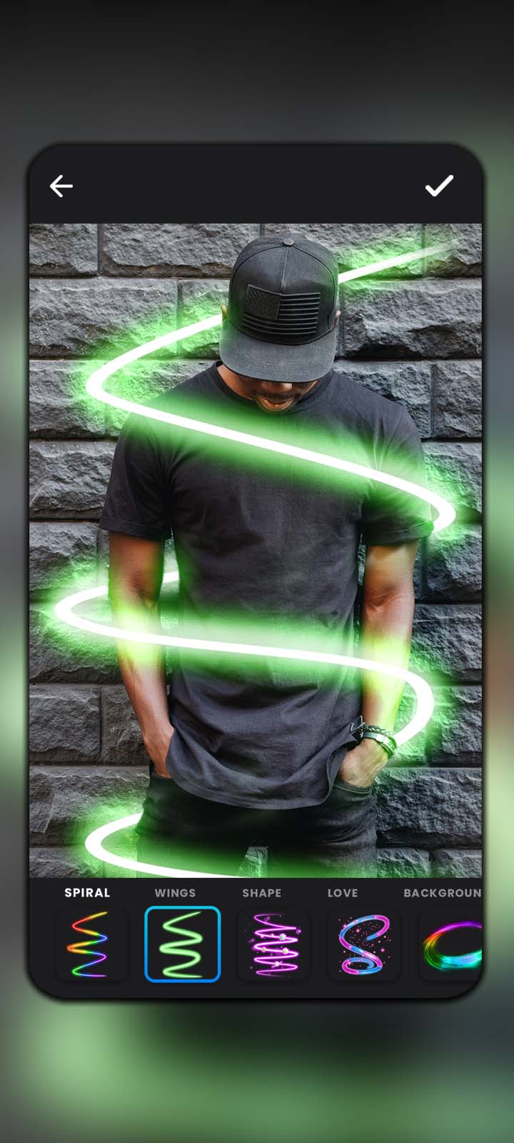 Cambia el fondo por una foto que tomaste tú mismo. Cambiar el escenario te permite crear una situación ficticia, como un paseo en la oscuridad bajo luces neón o unas vacaciones en los trópicos. El fondo se elimina o difumina al instante al hacer clic. Con la plétora de filtros y efectos de PicsApp, puedes tomarte un selfie que luzca profesional, con una piel impecable y una iluminación brillante y favorecedora. La cámara de PicsApp tiene filtros excelentes para tomar selfies, por lo que siempre te sentirás seguro. Puedes probar diferentes filtros fotográficos en tu rostro con la ayuda de las cámaras faciales en vivo.