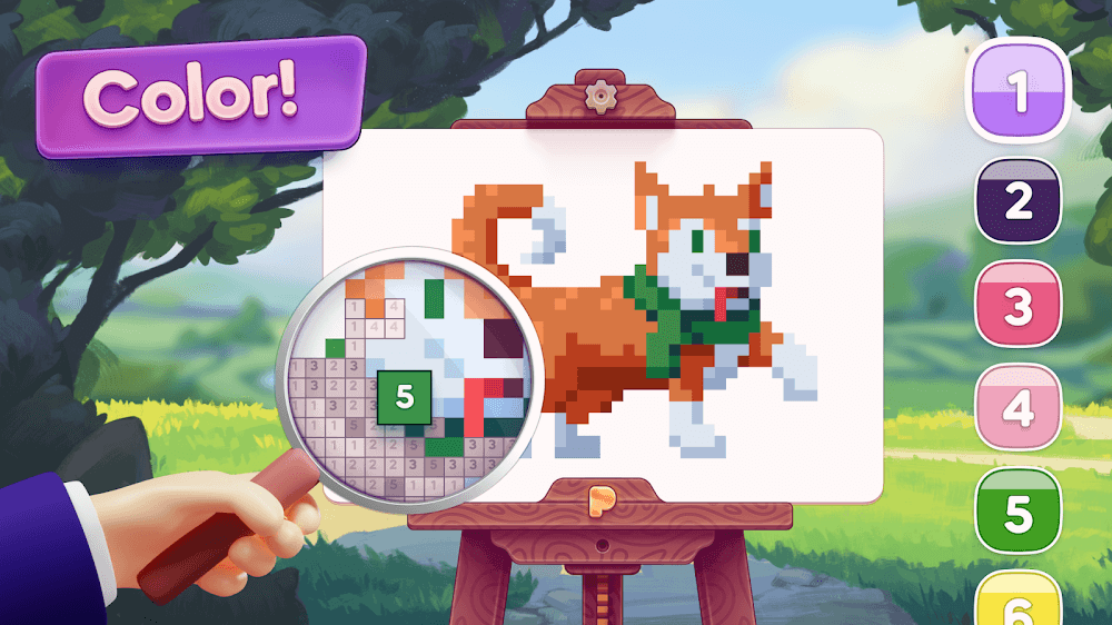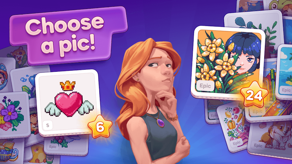 Además de completar las pinturas del juego, puedes deleitarte con más libros para colorear únicos en la biblioteca del juego. Hay numerosos libros para colorear en la inmensa biblioteca, cada uno con cientos de obras de arte creadas por artistas genuinos para que explores. La abundancia de arte pixel es fascinante, y están basados en varias artes famosas del mundo para que luego los colorees como quieras. Incluso puedes pagar con moneda del juego por algún arte único y empezar a colorearlo múltiples veces con diferentes estilos.
