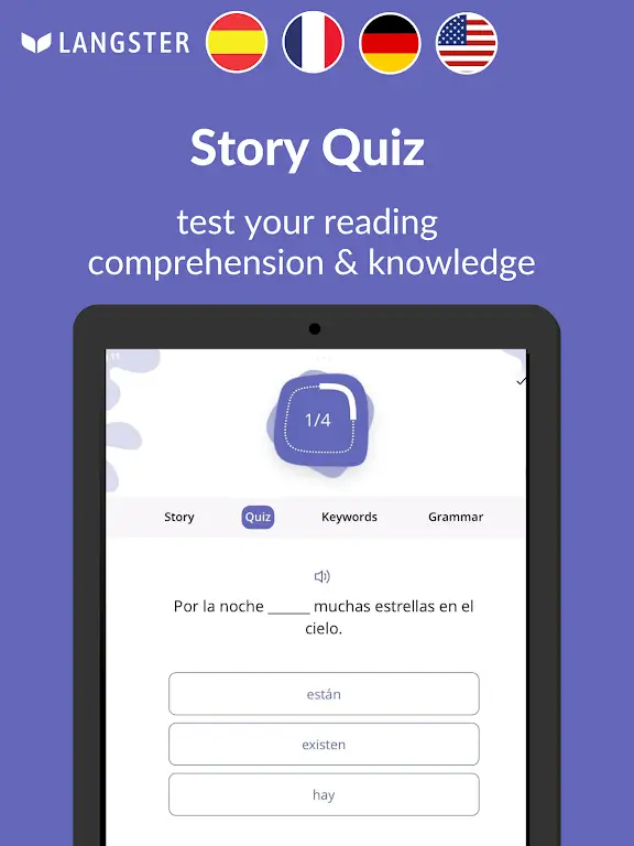 - Historias Diarias Relevantes: La aplicación te traerá historias y noticias actualizadas diariamente para que puedas leer, sentir y aprender nuevos idiomas de la manera más innovadora.