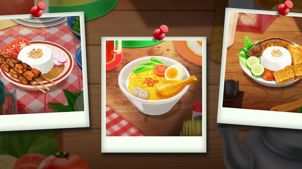 Los alimentos que tu empresa puede preparar para servir están listados en el menú. Así que, a medida que pasamos los niveles, obtenemos acceso a más recetas. Desafortunadamente, tendrás que gastar algo de dinero para conseguir una. Luego, en la siguiente fase, verás un gran aumento de comensales visitando tu restaurante. Fideos, albóndigas, pollo a la parrilla, pasteles de frijol y otros platos estarán disponibles. Además, Indonesia alberga muchos productos únicos. Las recetas de estos platos únicos pueden variar de simples a difíciles. Es importante poder mezclar los materiales de forma rápida y eficiente. Aprende a preparar estos platos a la perfección.