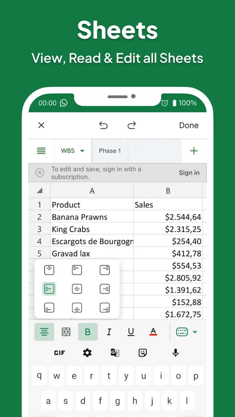 - Acceso Fluido: La aplicación permitirá a los usuarios acceder y editar hojas de cálculo rápidamente. Las funciones destacadas están proporcionadas, y puedes ver el diseño moderno y fácil de usar.