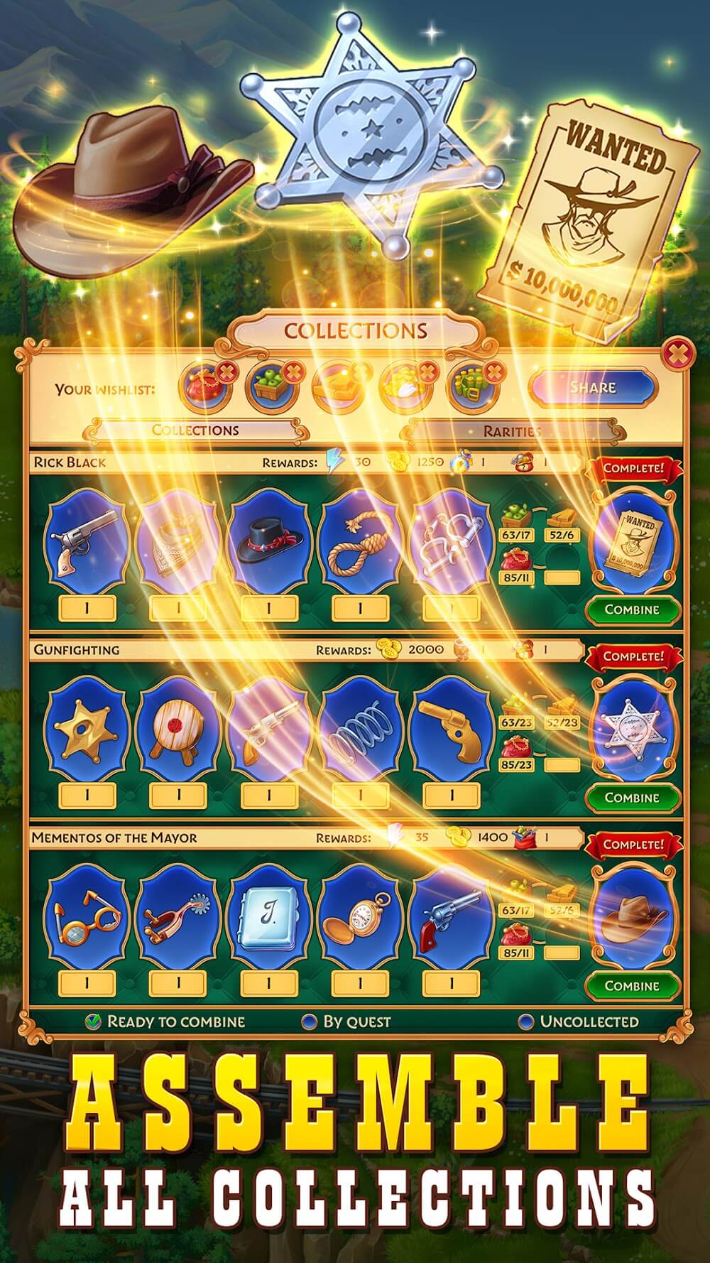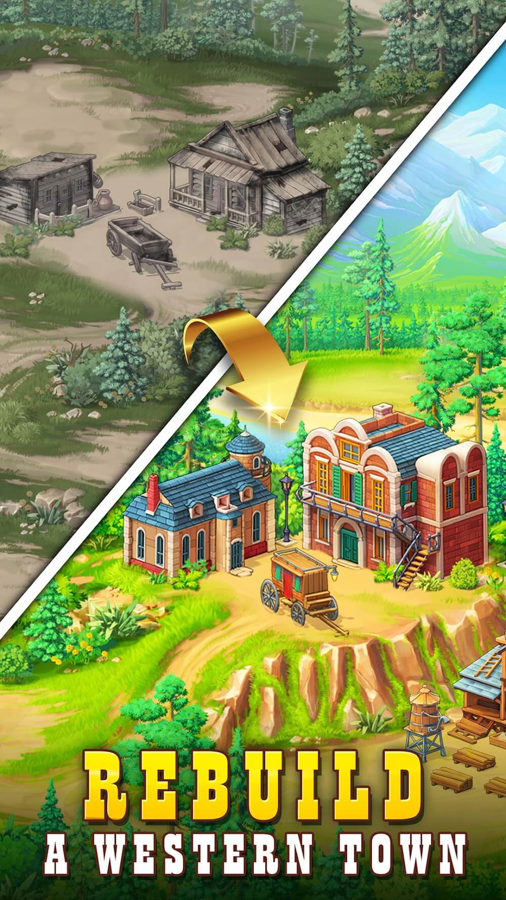 - Combina y construye: Los elementos de construcción de ciudades a menudo cambian poco pero aún muestran interés a través de las historias. Con el tiempo, comprenderás información sobre la nueva vida en el Salvaje Oeste.