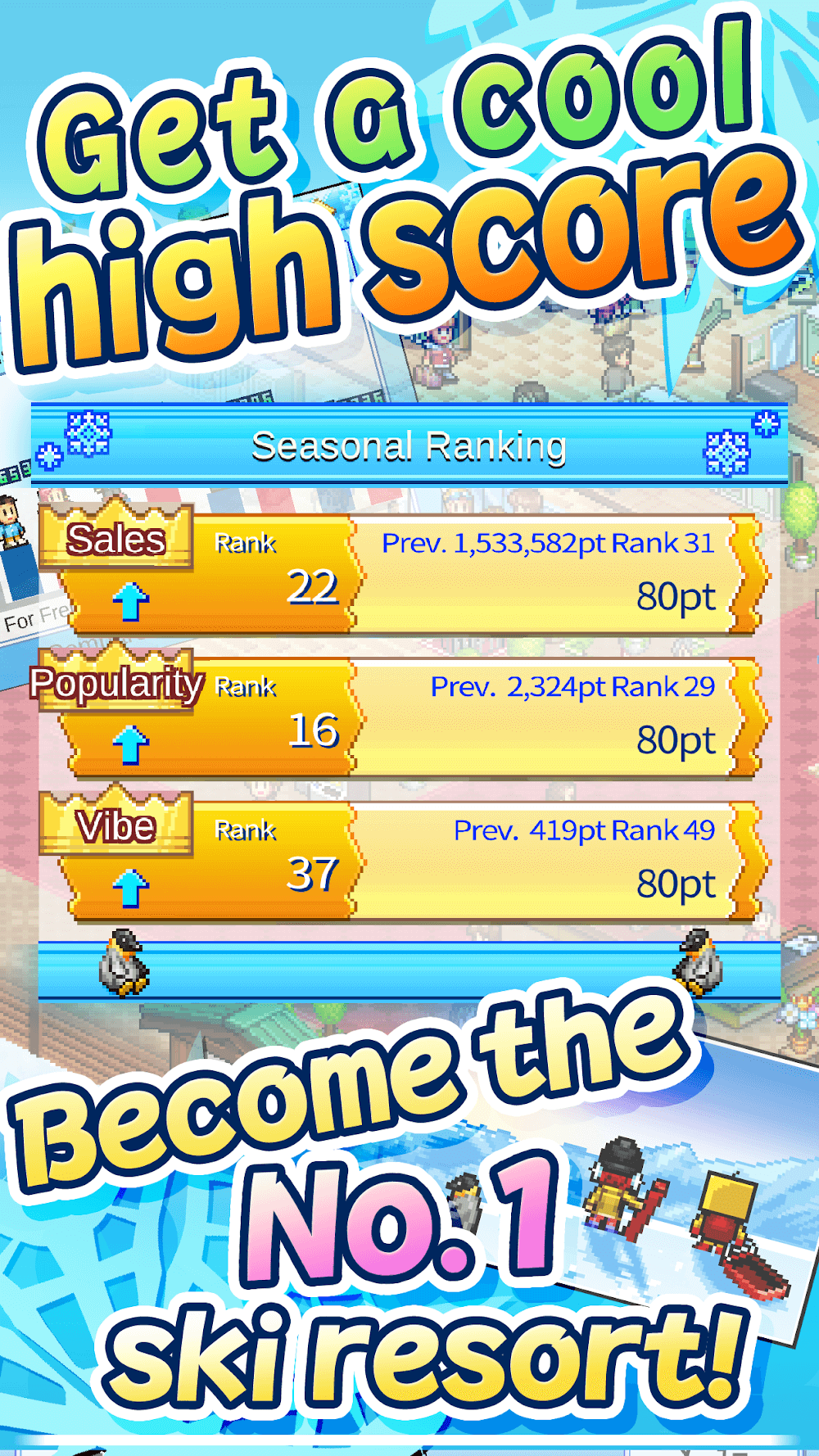 Shiny Ski Resort te brinda la auténtica sensación de gestionar un hermoso y avanzado resort de montaña nevada, obteniendo toda la atención y los mejores servicios. Tu propósito al gestionar las instalaciones es ofrecer los mejores servicios y brindar a todos momentos memorables con el esquí mientras se alojan en tu resort de lujo y confiable.